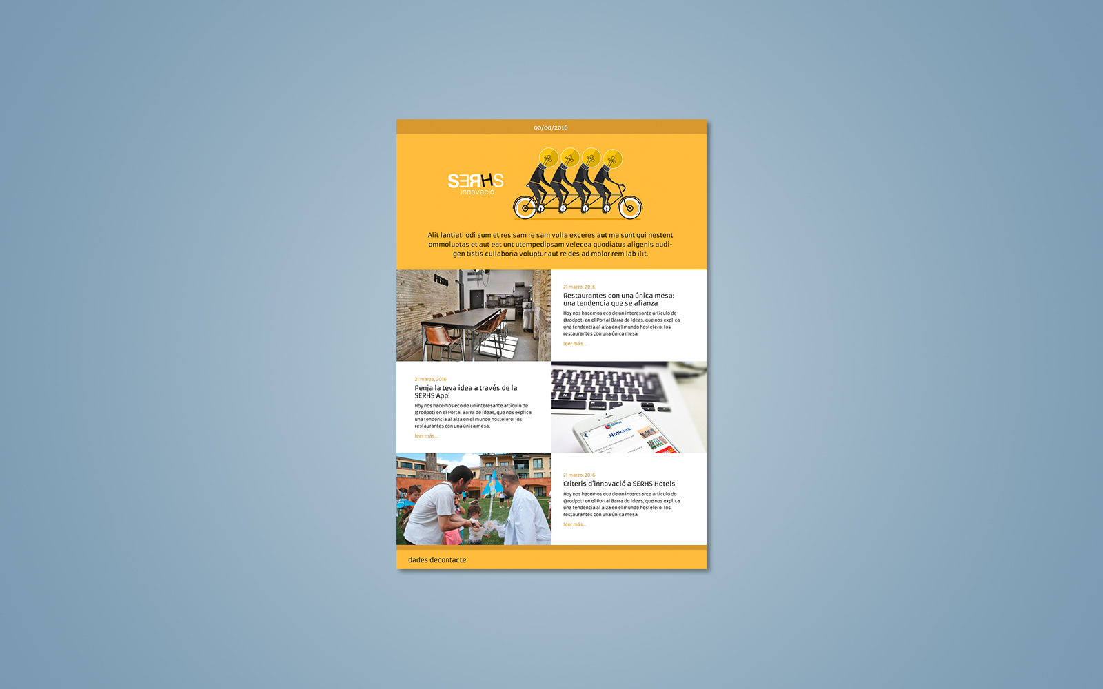 Creación y diseño de una newsletter de SERHS Innovación, que da a conocer cómo se trabaja la innovación dentro de Grup SERHS. Además, se hace eco de novedades tecnológicas, noticias y tendencias en innovación y creatividad.